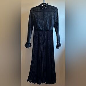 NWT Mac Duggal Embroidered Long Sleeve Ruffle Dress Sz 0 Black Style #49627