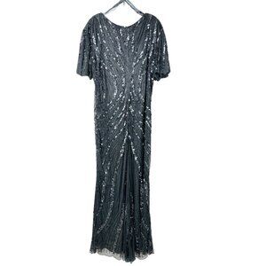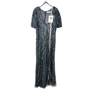 NWT Mac Duggal Flutter Sleeve Embellished Dress Pewter 16W