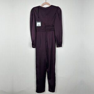 NWT Mac Duggal Front Twist Puff Sleeve Deep V Jumpsuit Plum 2 #A0546