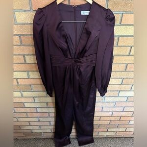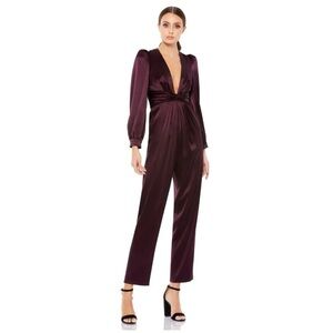 NWT Mac Duggal Front Twist Puff Sleeve Deep V Jumpsuit Size 2 Plum #2647