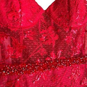 NWT Mac Duggal Gown 12406 Corset Floral Embroidered dress in Red Size 10