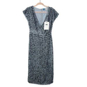 NWT Mac Duggal Gray Sequined Short Sleeve Wrap Over Cocktail Dress Slate 6 #8557
