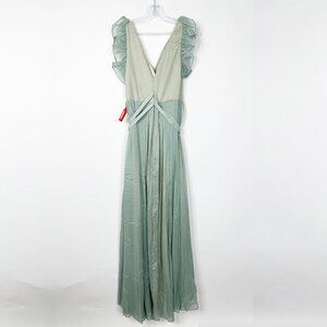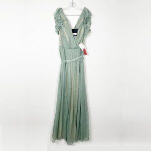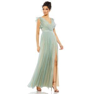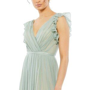 NWT Mac Duggal Green Flowy V Neck Ruffled Cap Sleeve Gown Sage 0
