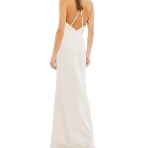 Looking for a dress that’s timeless and memorable? This perfect-fit gown has all the qualities of an iconic style. It’s crafted from sleek, solid crepe in a column silhouette and tailored with darting for a shapely fit. The bodice is designed with cutaway shoulders and detailed with jeweled pear-shaped drops and bows at the tops of slim straps that crisscross at the back.