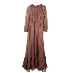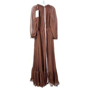 NWT Mac Duggal High Neck Puff Sleeve Tiered A Line Gown Chocolate 22W