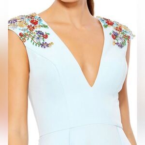 NWT Mac Duggal Ieena blue dress Beaded Cap Sleeve V Neck A Line Gown Sz 2