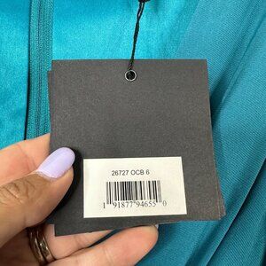 NWT Mac Duggal Jersey Puff Sleeve Cut Out Column Gown Ocean Blue 6 #7747- 48