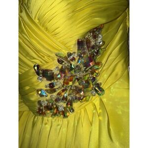 NWT Mac Duggal Lemon Yellow Bustier Embellished Prom Formal Dress Gown Sz 2 $399