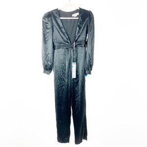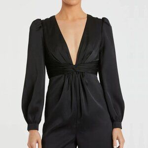NWT Mac Duggal Long Sleeve Ruched Plunging Neck Jumpsuit Black 6 #A0189