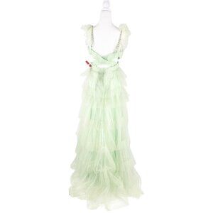 NWT Mac Duggal Green Ruffle Tiered Tulle Cut Out Gown, Style #60670
