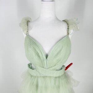NWT Mac Duggal Mint Ruffle Tiered Tulle Cut Out Gown, Style 60670