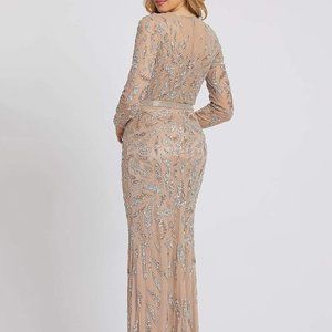 NWT Mac Duggal Mocha Beaded Long Sleeve Evening Gown Mocha Pink 5124