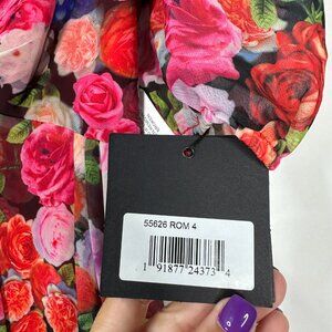 NWT Mac Duggal Multicolor Floral Front Tie Puff Sleeve Flowy Dress #A0538- 41