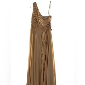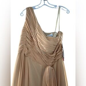 NWT Mac Duggal One Shoulder Chiffon Ruched Peach Dress 14