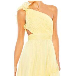 NWT Mac Duggal One Shoulder Ruffle Sleeveless Cut Out Asymmetrical High-Low Gown