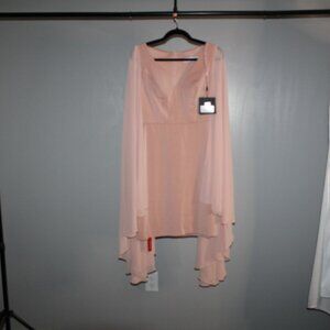 NWT Mac Duggal Pink 55358 Dramatic Cape Flowy Sleeve V-Neck Formal Dress SZ 2