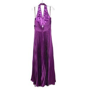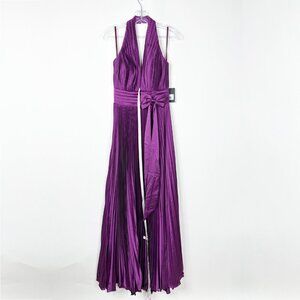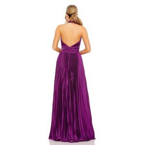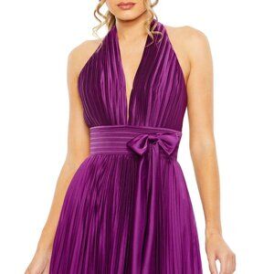 NWT Mac Duggal Pleated Halter Neck Gown with Center Bow Plum 2 #9662 - 63