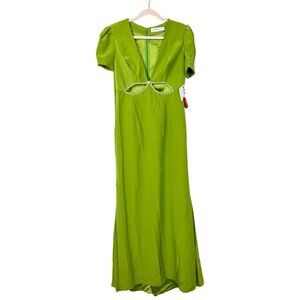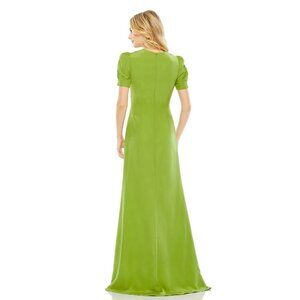NWT Mac Duggal Plunge Neck Puff Sleeve Cut Out Gown Apple Green 8