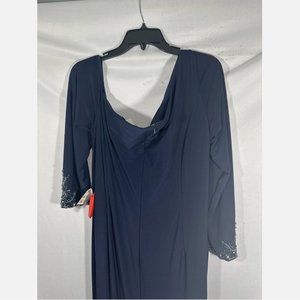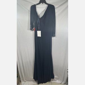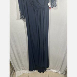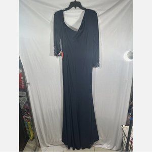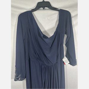 NWT Mac Duggal [ Plus 18W ] Ruched‎ One-Shoulder Long-Sleeve Gown Blue