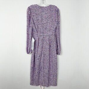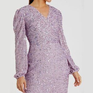 NWT Mac Duggal Purple Sequined Illusion Puff Sleeve V Neck Midi Lavender 10