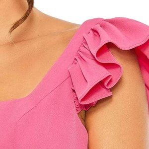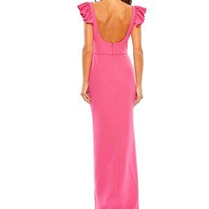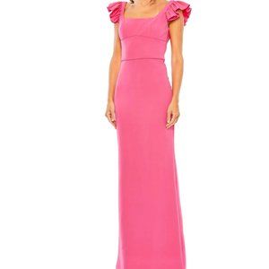 NWT Mac Duggal RUFFLE CAP SLEEVE OPEN BACK COLUMN GOWN SZ 16 27109 FUSCH…