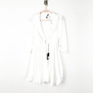 NWT Mac Duggal Satin Lapel A-Line Blazer Mini Dress White 2 #A0185