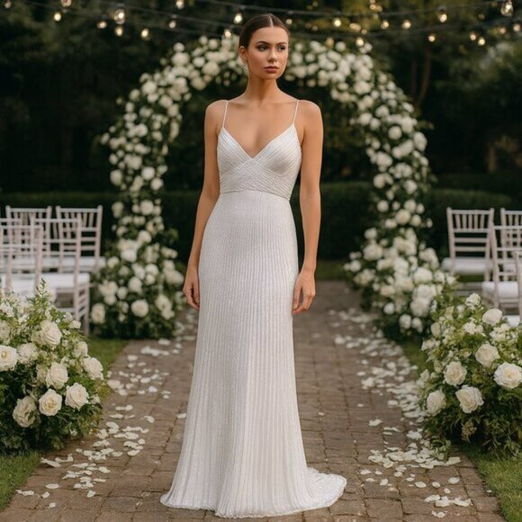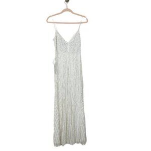NWT Mac Duggal Sequin Spaghetti Strap Gown Pearl 8 #7652