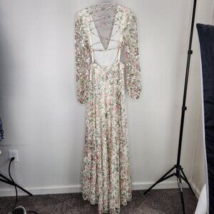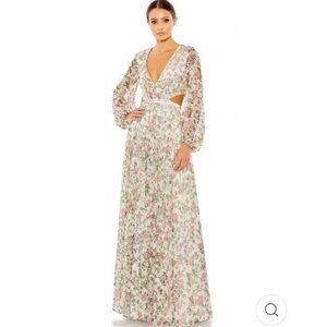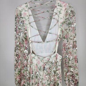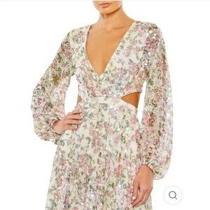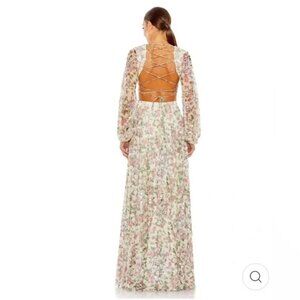 NWT Mac Duggal Sequined Floral Print Cut Out Lace Up Gown Size 6