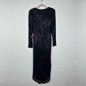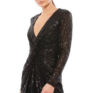 NWT Mac Duggal Sequined High Low Front Twist Midi Dress Black 6 #A0555-56
