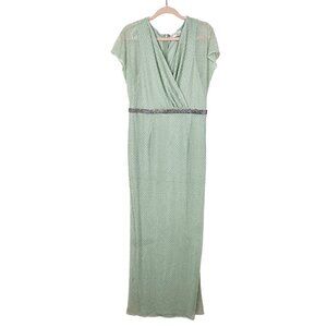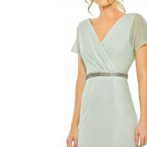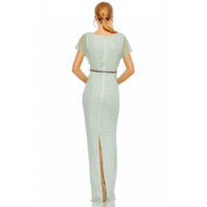 NWT Mac Duggal Short Sleeve Beaded V-Neck Gown Sage 6 #7965