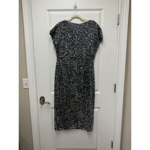 NWT Mac Duggal Size 12 Gray Sequined Cap Sleeve Wrap Over Cocktail Midi Dress