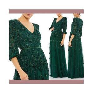 NWT Mac Duggal 12 5497 Embellished V Neck 3/4 Sleeve Aline Gown Emerald .Embellished A line flowing Emeral Green gown. A stunning gown for the holidays. Imagine how it flows?