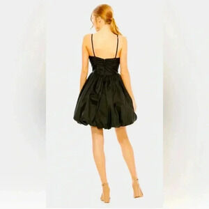 NWT Mac Duggal Spaghetti Strap Center Bow Balloon Mini Dress in Black Size 4