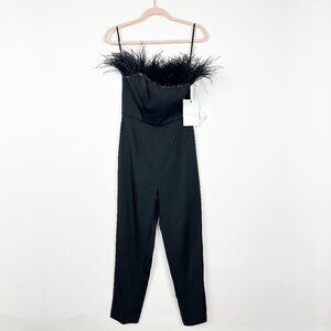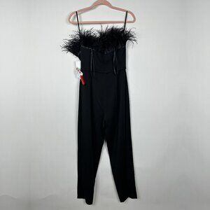 NWT Mac Duggal Strapless Feathered Crepe Jumpsuit Black 2 #A0561