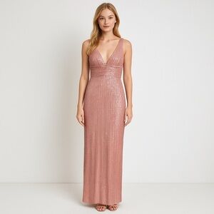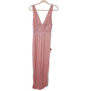 NWT Mac Duggal Strappy Low Back Sequin Plunge Dress Pink 2 #7978