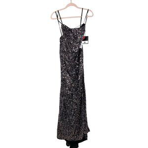 NWT Mac Duggal Stretch Sequined Open Back Lace Up Gown Black Rose 8 #8476