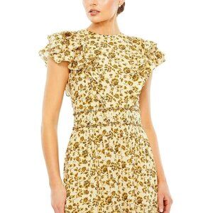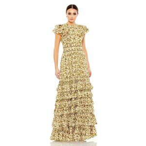NWT Mac Duggal Tiered Ruffle High Neck Gown Taupe Multi 18 #7654