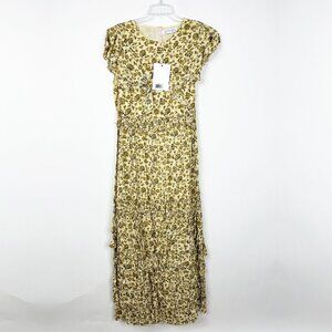 This elegant gown features short ruffle sleeves and a tiered ruffle skirt that adds volume and movement to your look. The high neckline adds a touch of sophistication, making you stand out at any formal event.
