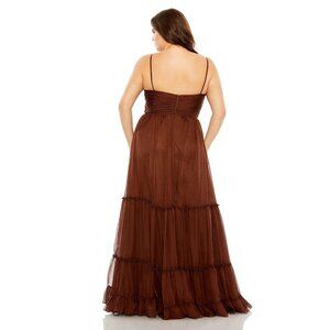 NWT Mac Duggal Tiered V-Neckline Ruched Gown Chocolate 16W