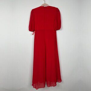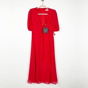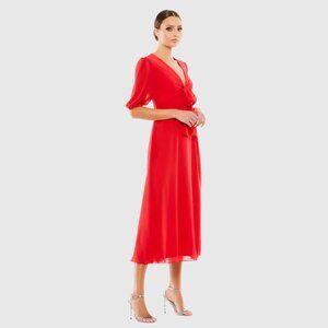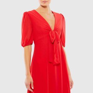 NWT Mac Duggal V Neck Bow Detail Flowy Midi Dress Chili Red 4 #A0534 - 35