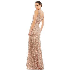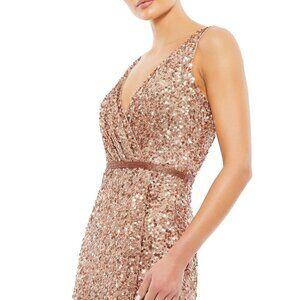 NWT Mac Duggal V-Neck High Slit Sequined Wrap Gown 16 Copper #8058