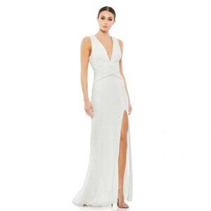 NWT Mac Duggal V-Neck Sequin Wrap Waist Gown White 26598 Size 6