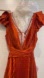 Stunning orange dress by Mac Duggal. Features pleated design, string up back, and sleeveless cut.