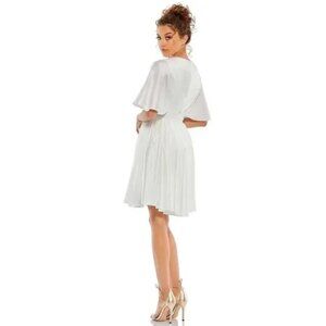 Ieena for Mac Duggal White Satin Flowy Cape Sleeve Mini Dress Size 2 NWT