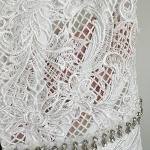 NWT Mac Duggal White Wedding Dress 14 Corset Plunge Trumpet Lace Gown