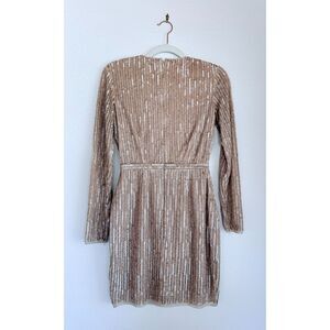 NWT Mac Duggal Women's Long Sleeved Sequined Mini Dress in Nude Size 0