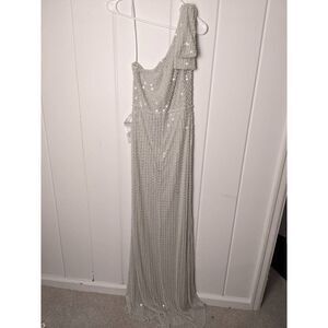 NWT Mac Duggal Women’s One Shoulder Beaded Maxi Dress Silver Size 6