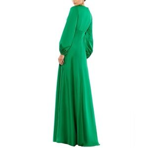 NWT Mac Duggal Womens Puff Sleeve Empire Waist Trumpet Gown Emerald Size 0 55693