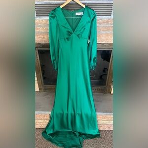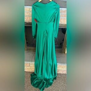 NWT Ieena for Mac Duggal Womens Puff Sleeve Empire Waist Trumpet Gown Emerald Green Size 0 55693