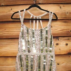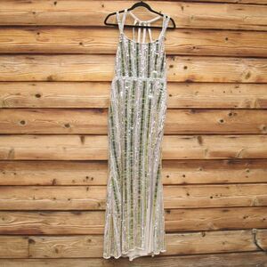 NWT Mac Duggal 93981 HALTER NECK Mirror EMBELLISHED DETAILED BACK GOWN Dress Nu